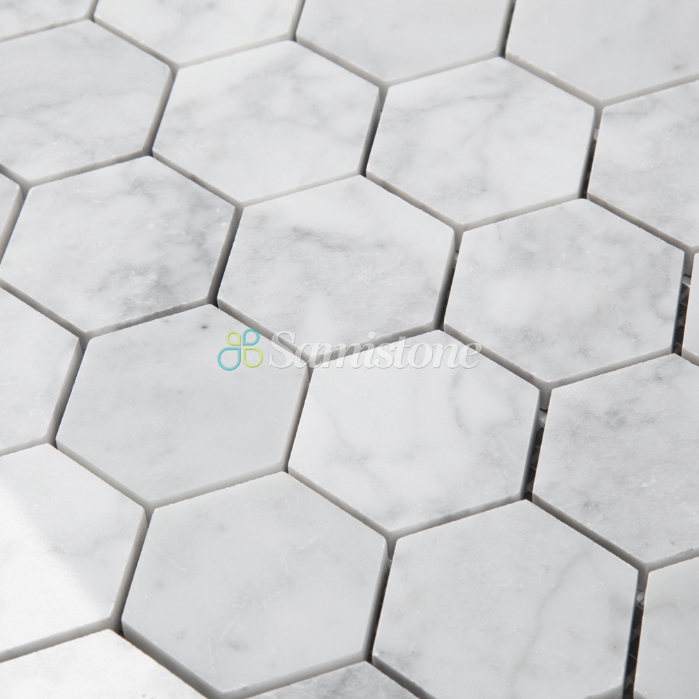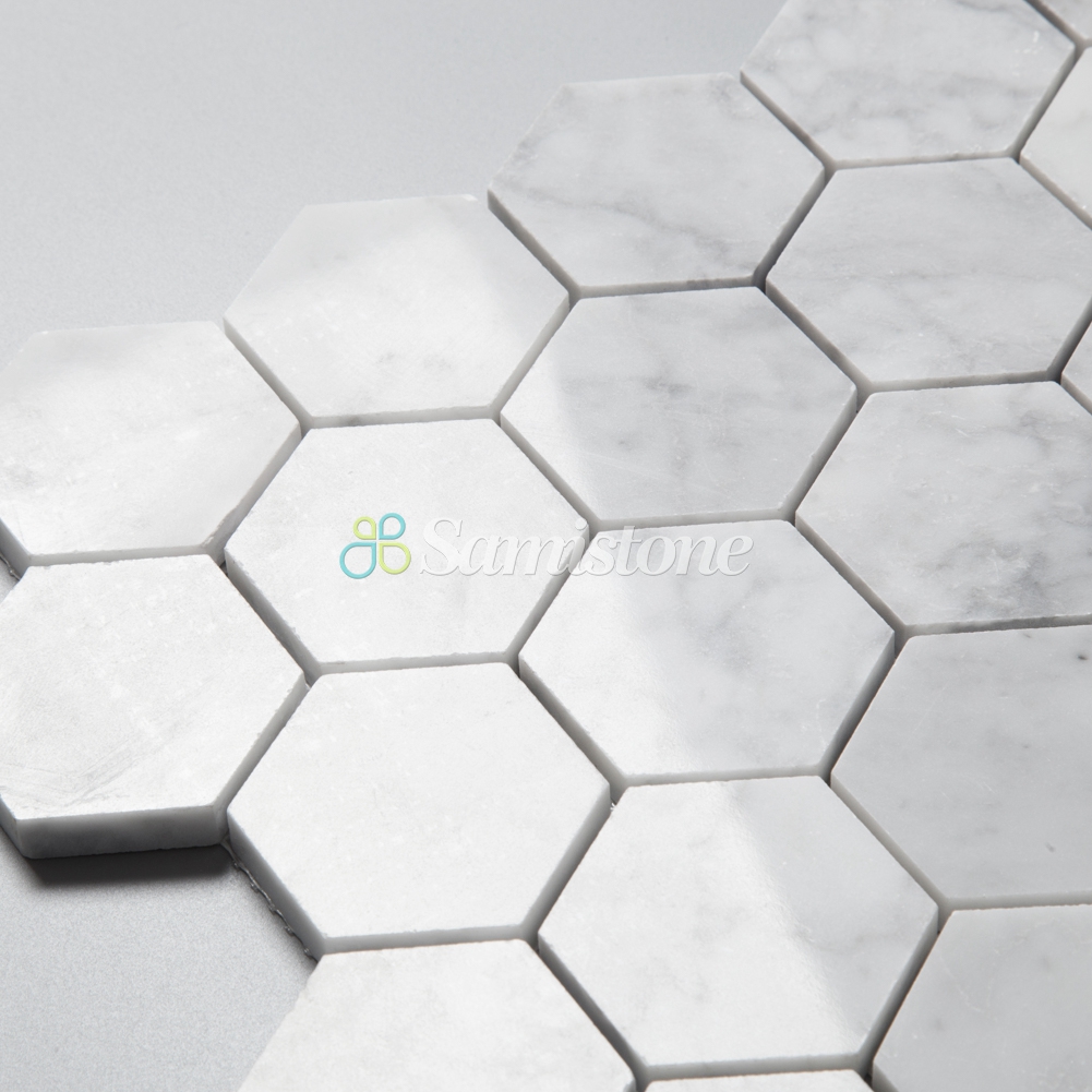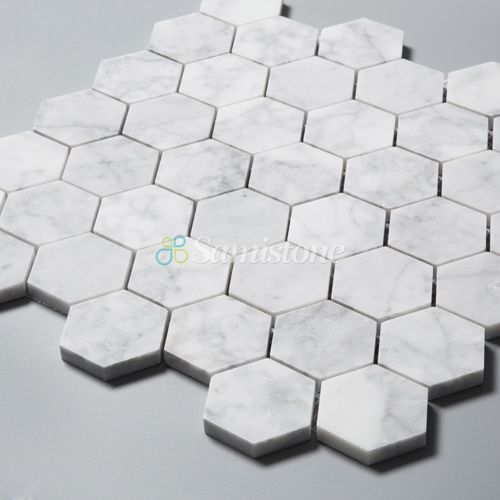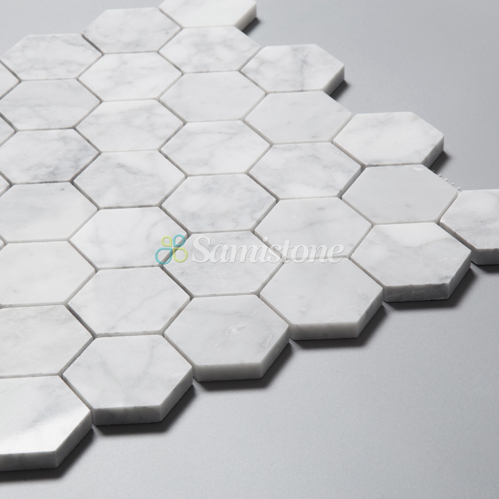 Samistone Carrara White Marble 2″ Hexagon Mosaic Tile China Factory